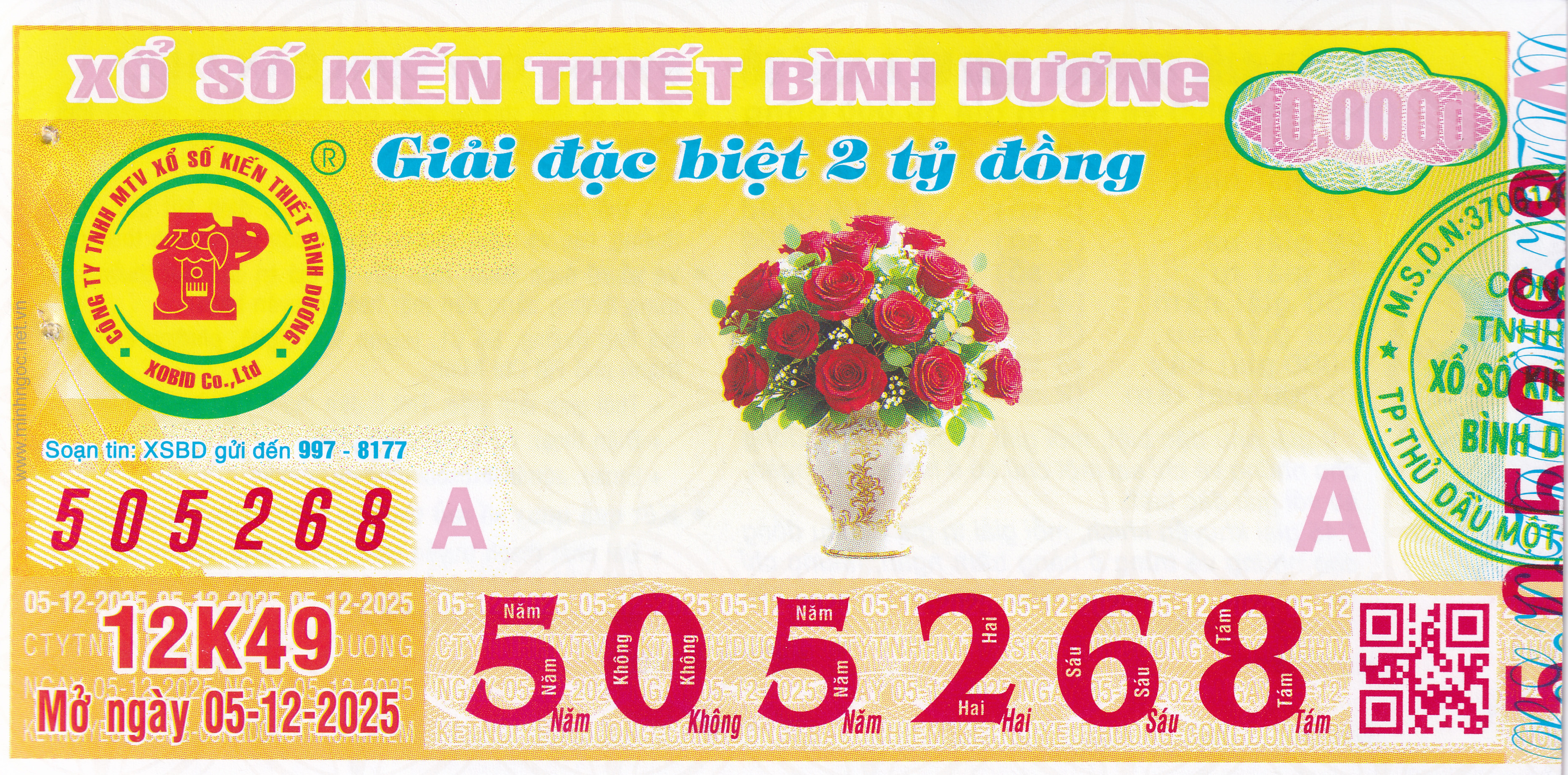 Mẫu vé số Miền Nam ngày 05/12/2025
