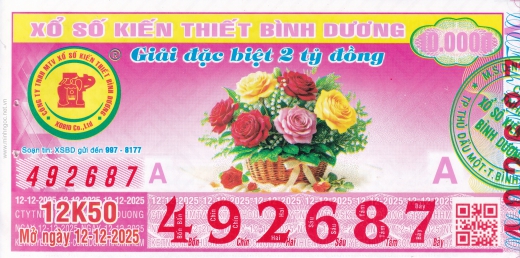 Mẫu vé số Miền Nam ngày 12/12/2025