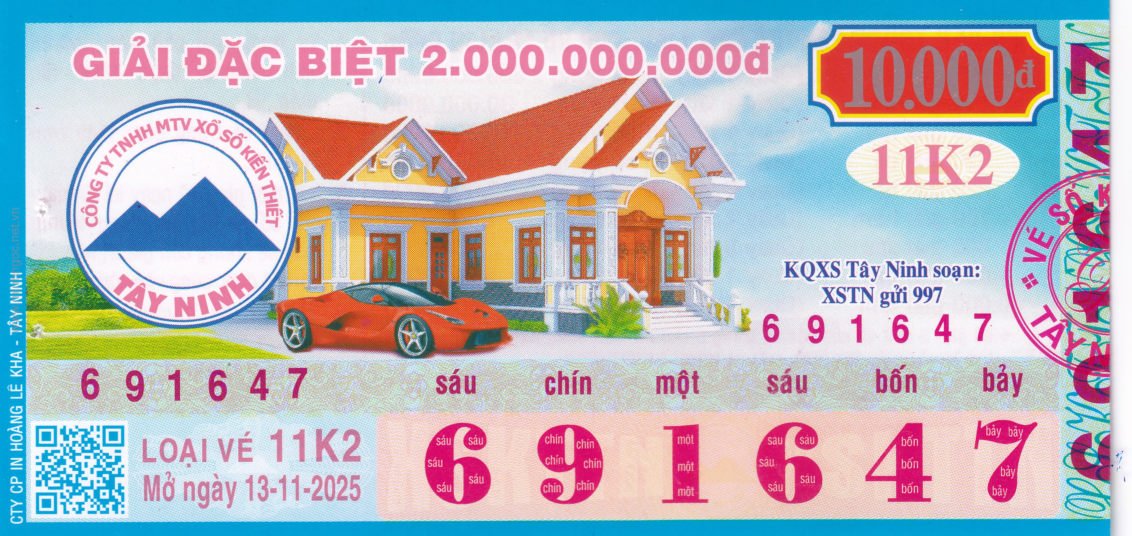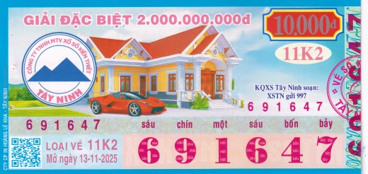 Mẫu vé số Miền Nam ngày 13/11/2025