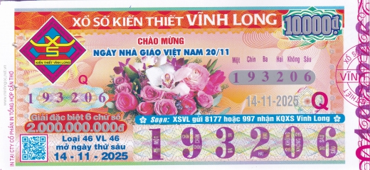 Mẫu vé số Miền Nam ngày 14/11/2025