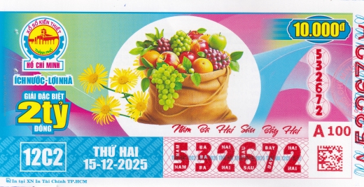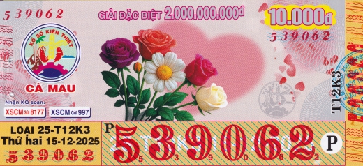Mẫu vé số Miền Nam ngày 15/12/2025