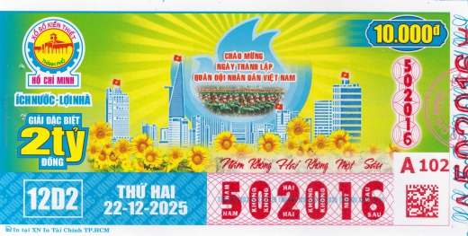 Mẫu vé số Miền Nam ngày 22/12/2025