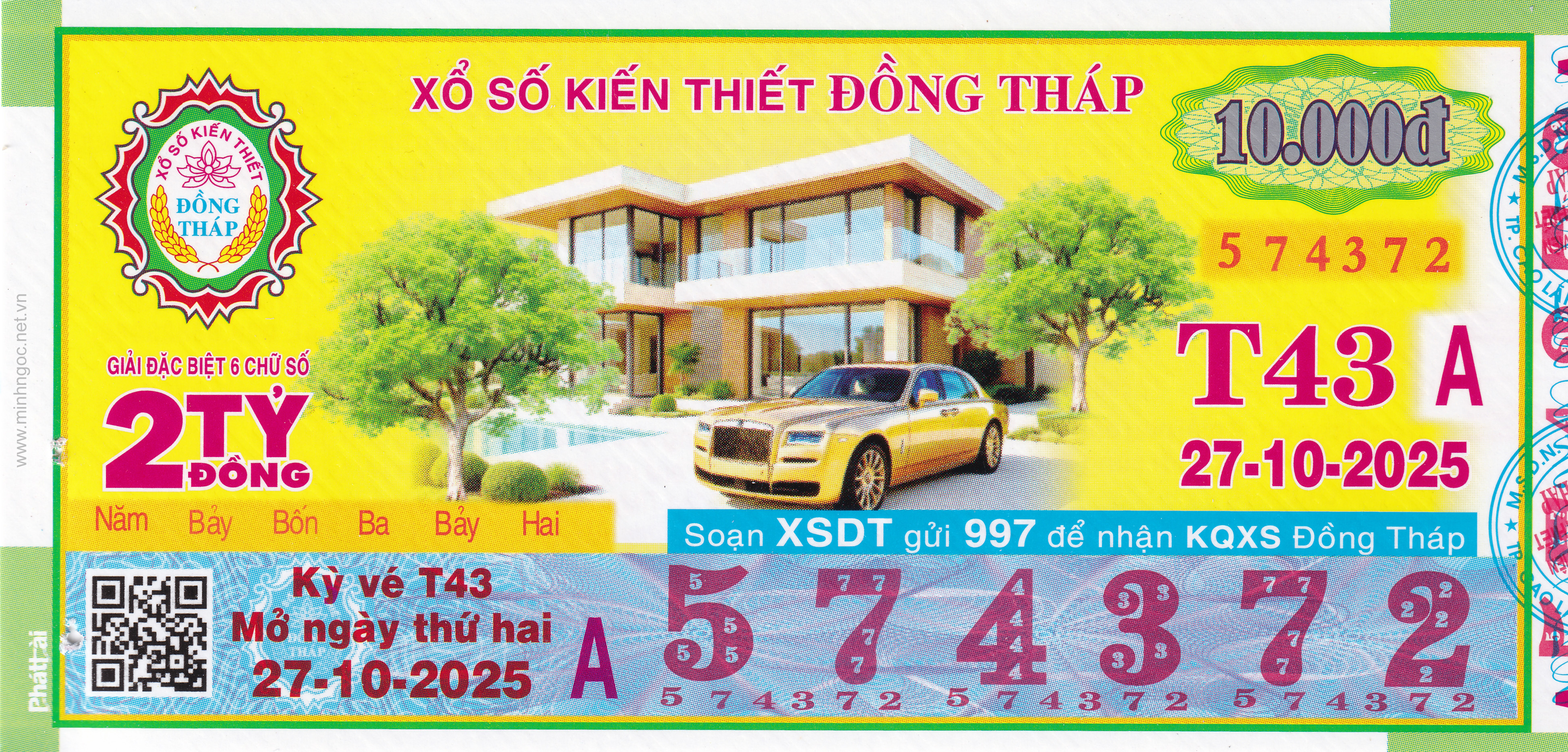 Mẫu vé số Miền Nam ngày 27/10/2025
