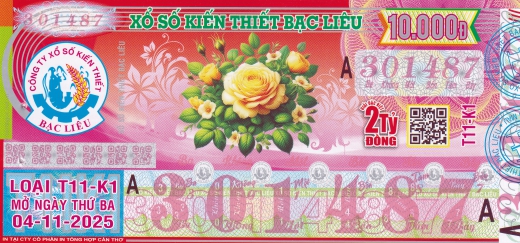 Mẫu vé số Bạc Liêu ngày 04/11/2025