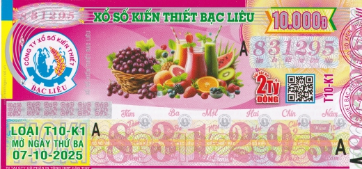 Mẫu vé số Bạc Liêu ngày 07/10/2025