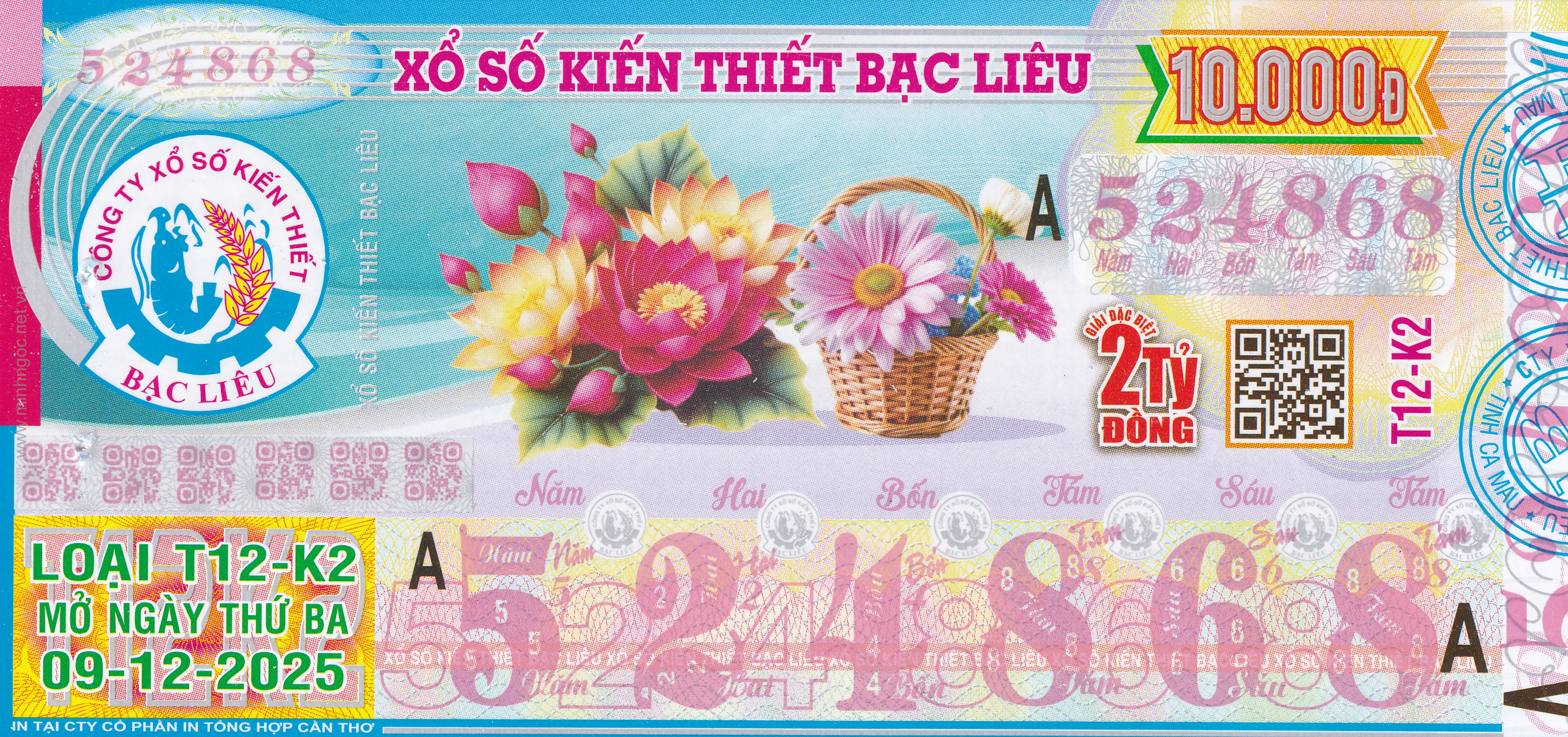 Mẫu vé số Bạc Liêu ngày 16/12/2025