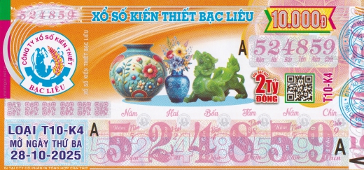 Mẫu vé số Bạc Liêu ngày 28/10/2025