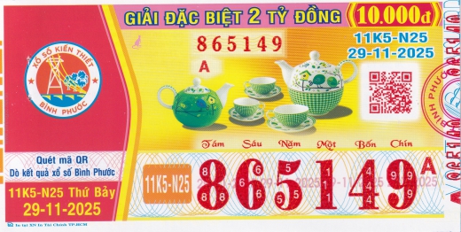Mẫu vé số Bình Phước ngày 29/11/2025