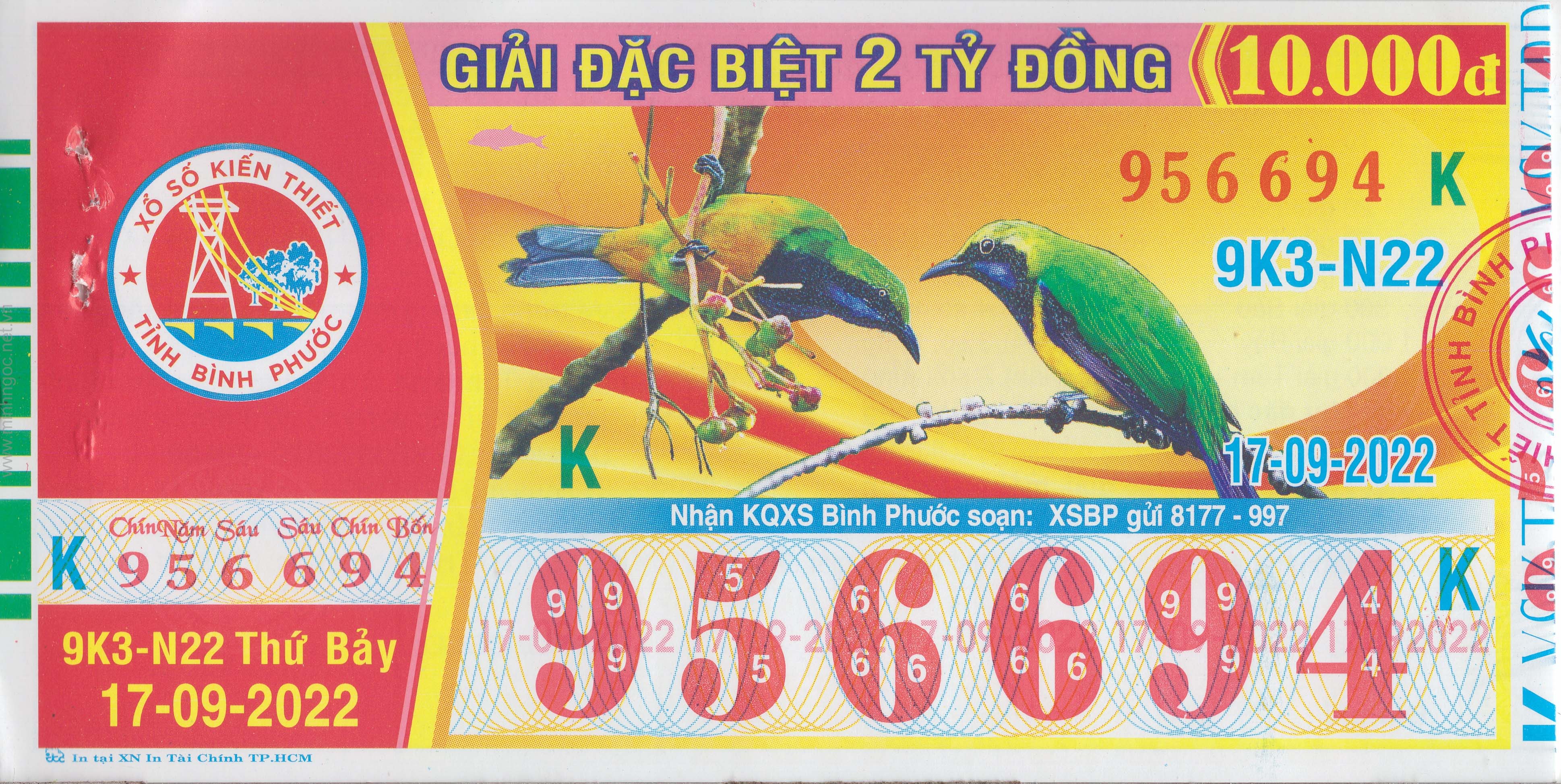 Mẫu vé số Bình Phước ngày 24/09/2022