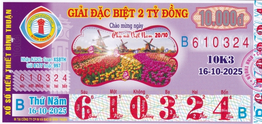 Mẫu vé số Bình Thuận ngày 16/10/2025