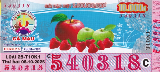 Mẫu vé số Cà Mau ngày 06/10/2025