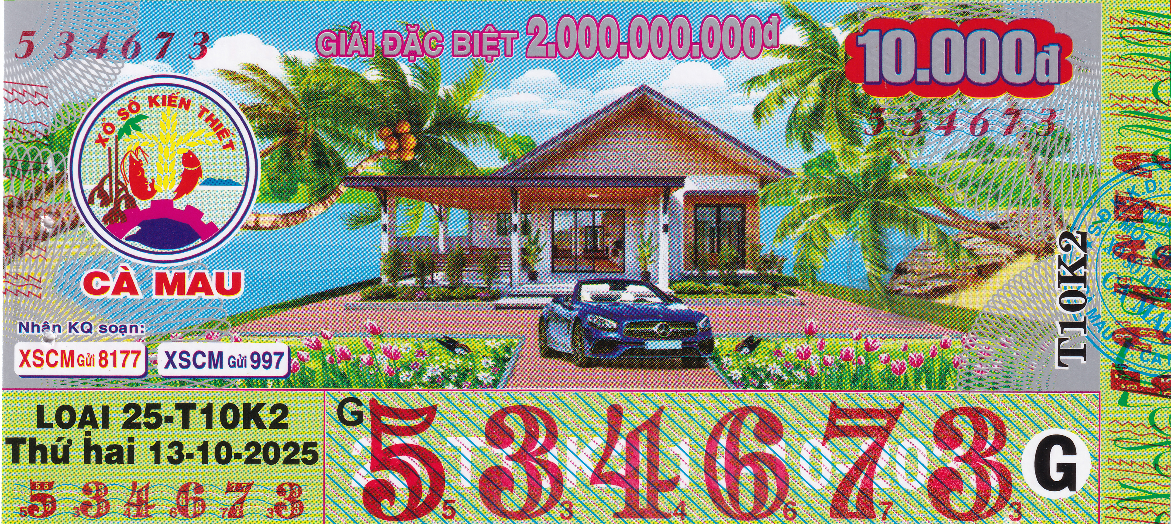 Mẫu vé số Cà Mau ngày 13/10/2025