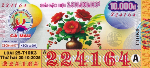 Mẫu vé số Cà Mau ngày 20/10/2025
