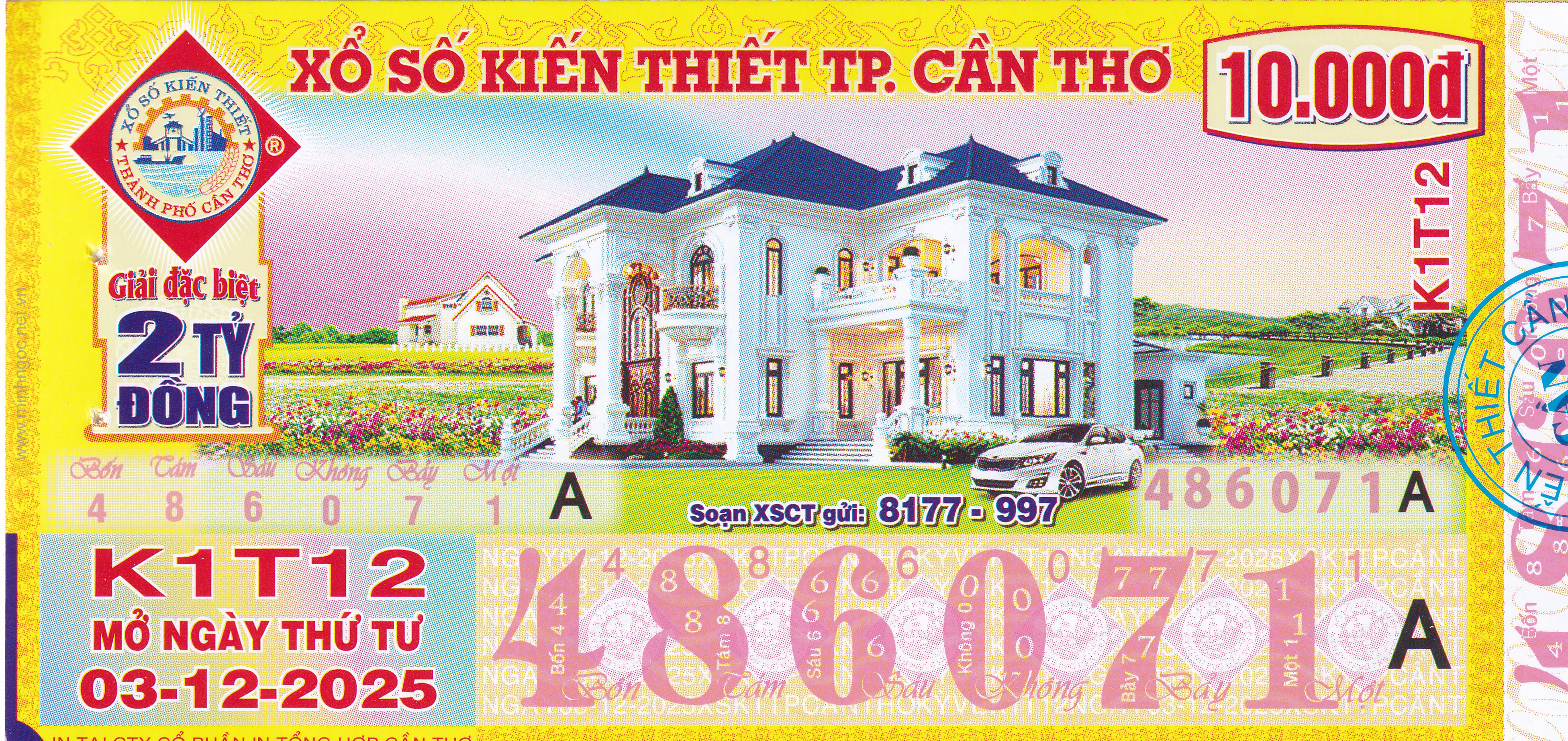 Mẫu vé số Cần Thơ ngày 03/12/2025