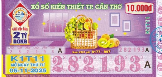 Mẫu vé số Cần Thơ ngày 05/11/2025