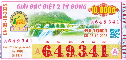 Mẫu vé số Đà Lạt ngày 05/10/2025