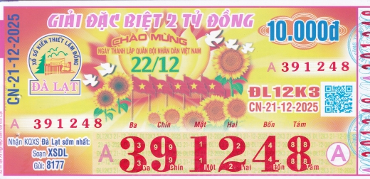Mẫu vé số Đà Lạt ngày 21/12/2025