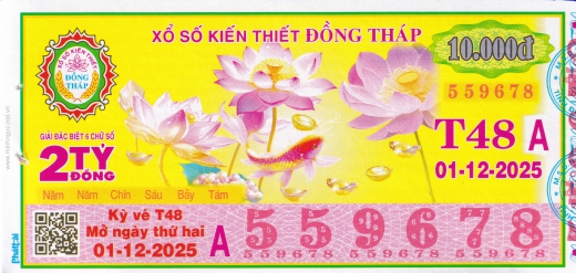 Mẫu vé số Đồng Tháp ngày 08/12/2025