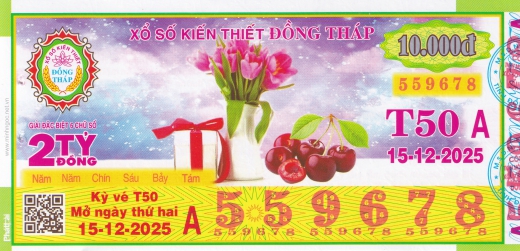Mẫu vé số Đồng Tháp ngày 15/12/2025