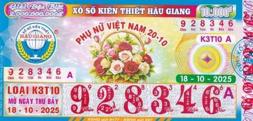 Mẫu vé số Hậu Giang ngày 18/10/2025
