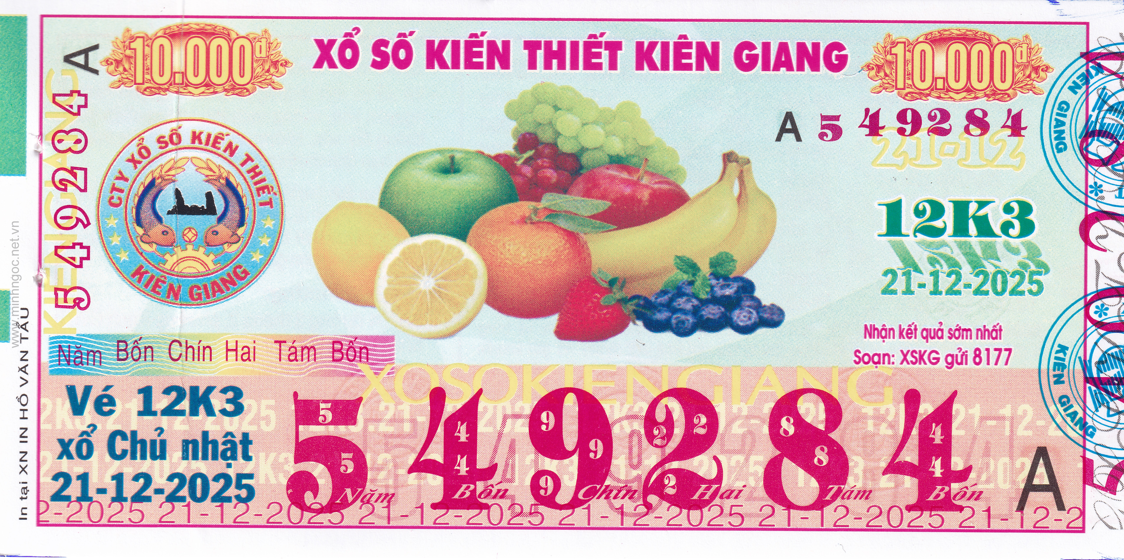 Mẫu vé số Kiên Giang ngày 21/12/2025