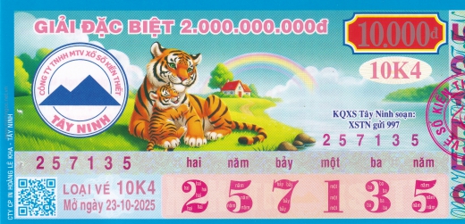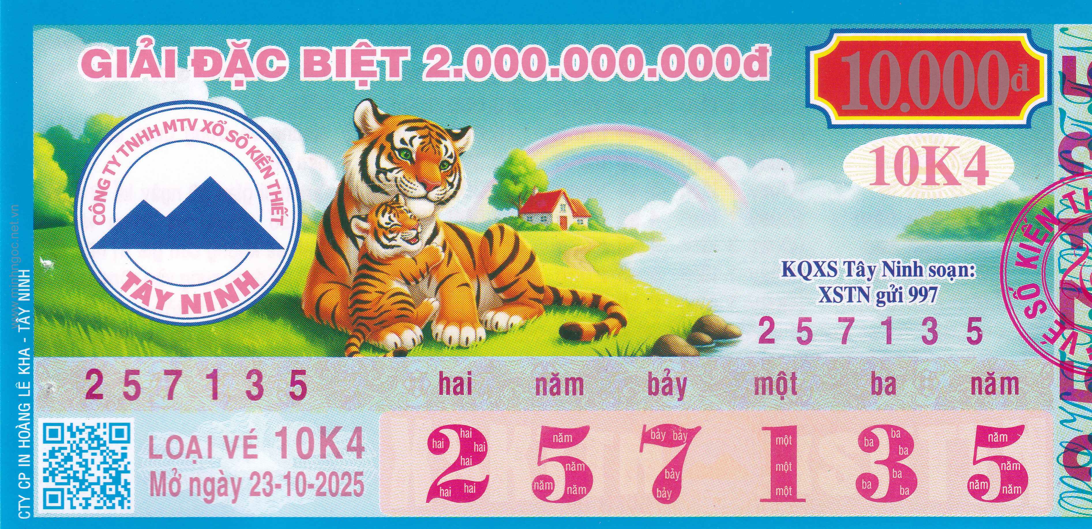 Mẫu vé số Tây Ninh ngày 23/10/2025