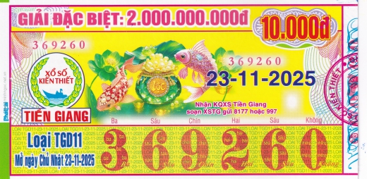 Mẫu vé số Tiền Giang ngày 23/11/2025