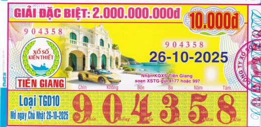 Mẫu vé số Tiền Giang ngày 26/10/2025